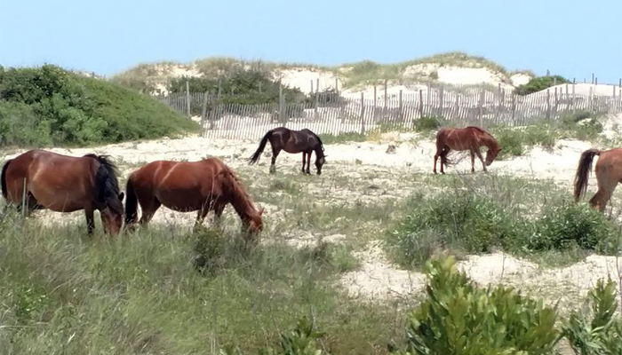 • OBSERVE: Never come within 50 feet of a wild horse or herd of wild horses. If you are approached by a group of wild horses on the beach, please respect their space and move away per the ordinance.